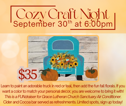 - Fall "Got it at Grace" Craft Fair is November 1, 2025. Use the following link for registration: https://forms.gle/Wy3L1S8A5T9wtotU8