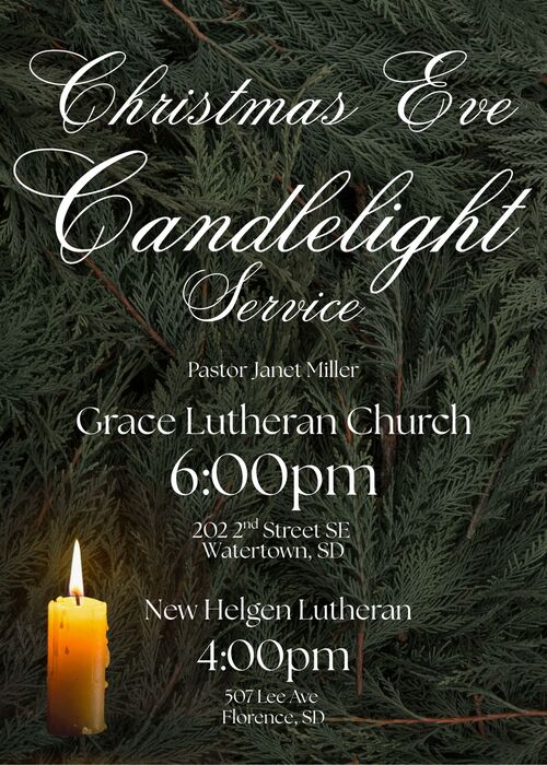 In an ongoing effort to practice mutual ministry and rural ministry, GLC is partnering with FLP. Pastor Janet Miller has already been partnering with Florence Lutheran Parish, which consists of New Helgen and Goodhue congregations in Florence, South Dakota. In her previous call, she was partnered with FLP by providing a weekly service, a monthly Bible study, Confirmation classes, weddings, baptisms, funerals, etc. She will continue with that ministry while also being a full-time pastor at Grace Lutheran. Because of the partnership, our service time has changed from 9:30am to 9:00am. The wonderful news is that if you miss her service in Watertown, you can catch her in Florence at 11am. Or if you normally go to Florence but have an afternoon packed full of activities, you can catch the early service in Watertown that week. Once a month there is a service at Goodhue Lutheran in Rural Florence at 11am. It is the sweetest country church and embodies "Home on the plains" and "Amazing Grace" at the same time. You definitely have to visit!