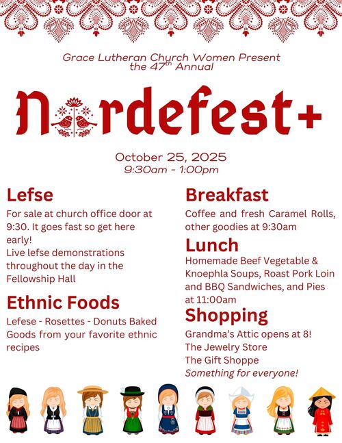 Nordefest began with a fundraising dream of the Grace Lutheran Church Women, or GLCW. Since Grace was originally named First Scandinavian Evangelical Lutheran Church way back in 1883, they decided that Nordefest would be a great nod to the heritage of the Ladies Aid that came before them. Many of the GLCW members already knew how to roll lefse, and for the next 40 plus years they have been passing down the skill to the next generation. Now we have men and women helping make lefse for about 5 weeks every fall to get ready for Nordefest+
